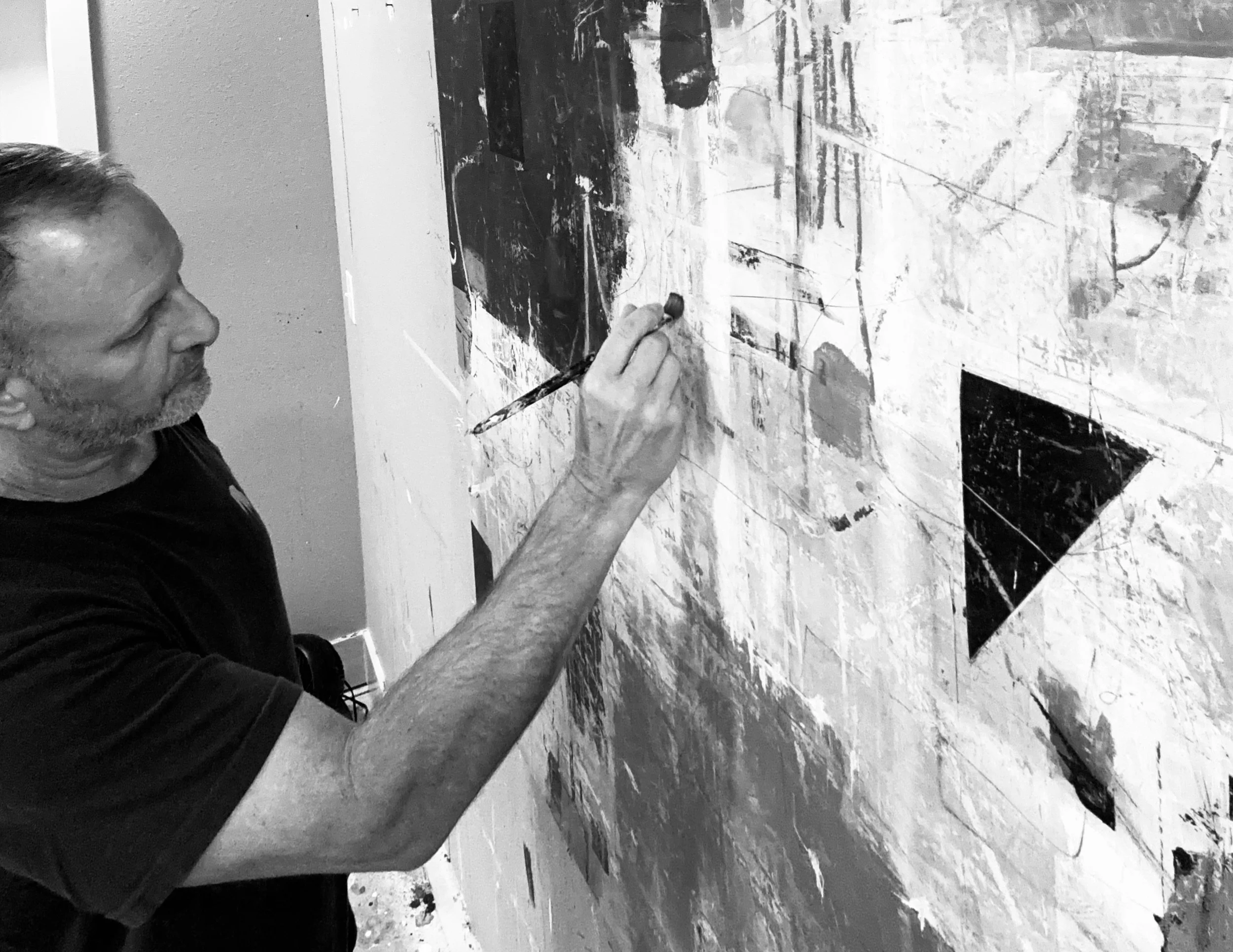 Bret Neathery’s journey into painting began in 2018 during a trip to Los Angeles. While in town for a work conference, he visited the Museum of Contemporary Art and encountered Jackson Pollock’s No. 1 (1949) for the first time. Though familiar with Pollock’s work from books and photos, seeing it in person had a completely different effect. He stood in front of the piece, completely still—feeling it more than observing it. That moment became a turning point. It was the first time he truly understood the emotional power a painting could hold, and he left the museum knowing he wanted to create work that could move people in the same way.